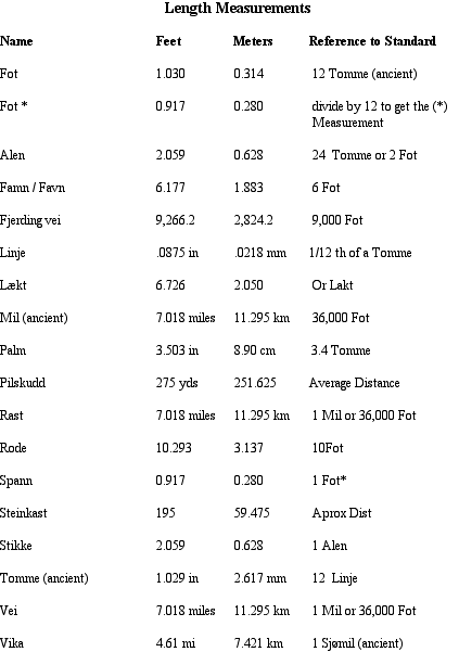 Not much to add here. Most everything is explained in the data file. I put this together while sorting them out from real Viking measurements, and thought this might be interesting. If there are errors here I am the one to blame, and hope that someone who knows the correct answer will tell me. I owe much thanks to my sources, the books listed in the reference area of the web site, the universities of Scandinavia, Oxford University, and Dan Carlson Phd, of Sweden.
